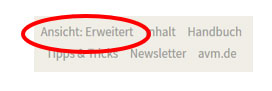 Wichtig: Prüfen Sie nach dem Einloggen, ob die Ansicht auf „Erweitert“ steht. Diese Angabe steht am Ende der Seite, häufig unten unter der Navigation (abhängig von der fritz.box-Version). Sollte dort „Ansicht: Standard“ stehen, dann klicken Sie auf das Wort „Standard“ und es wird auf „Erweitert“ umgestellt. Sie sehen dann „Ansicht: Erweitert“.